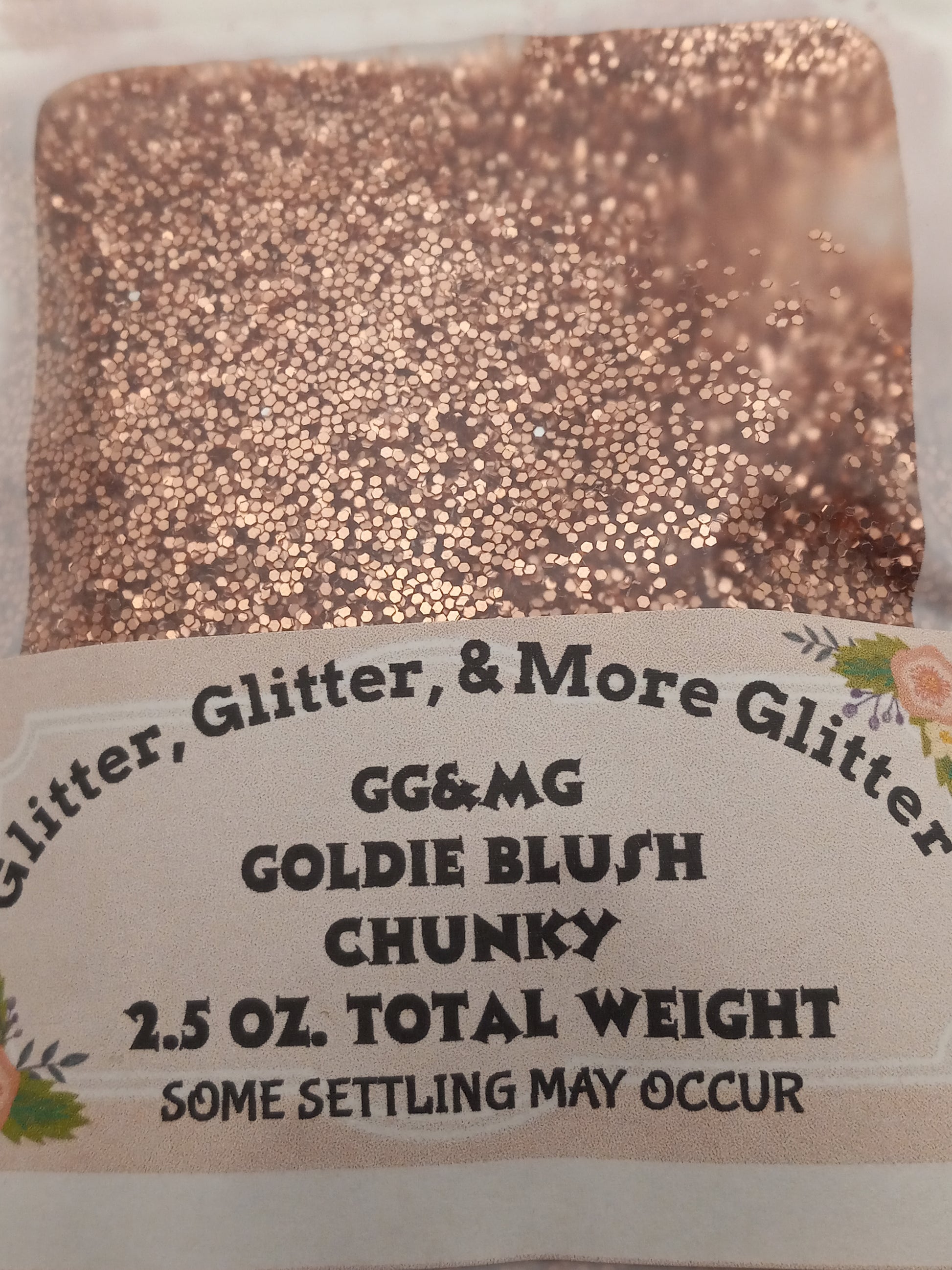 Experience the exquisite charm and radiance of Goldie Blush, a captivating chunky gold glitter that glistens with enchanting allure. Crafted with flakes larger than the regular-size glitter but smaller than an X-Chunky flake, this glitter adds a touch of opulence and elegance to your artistic creations.