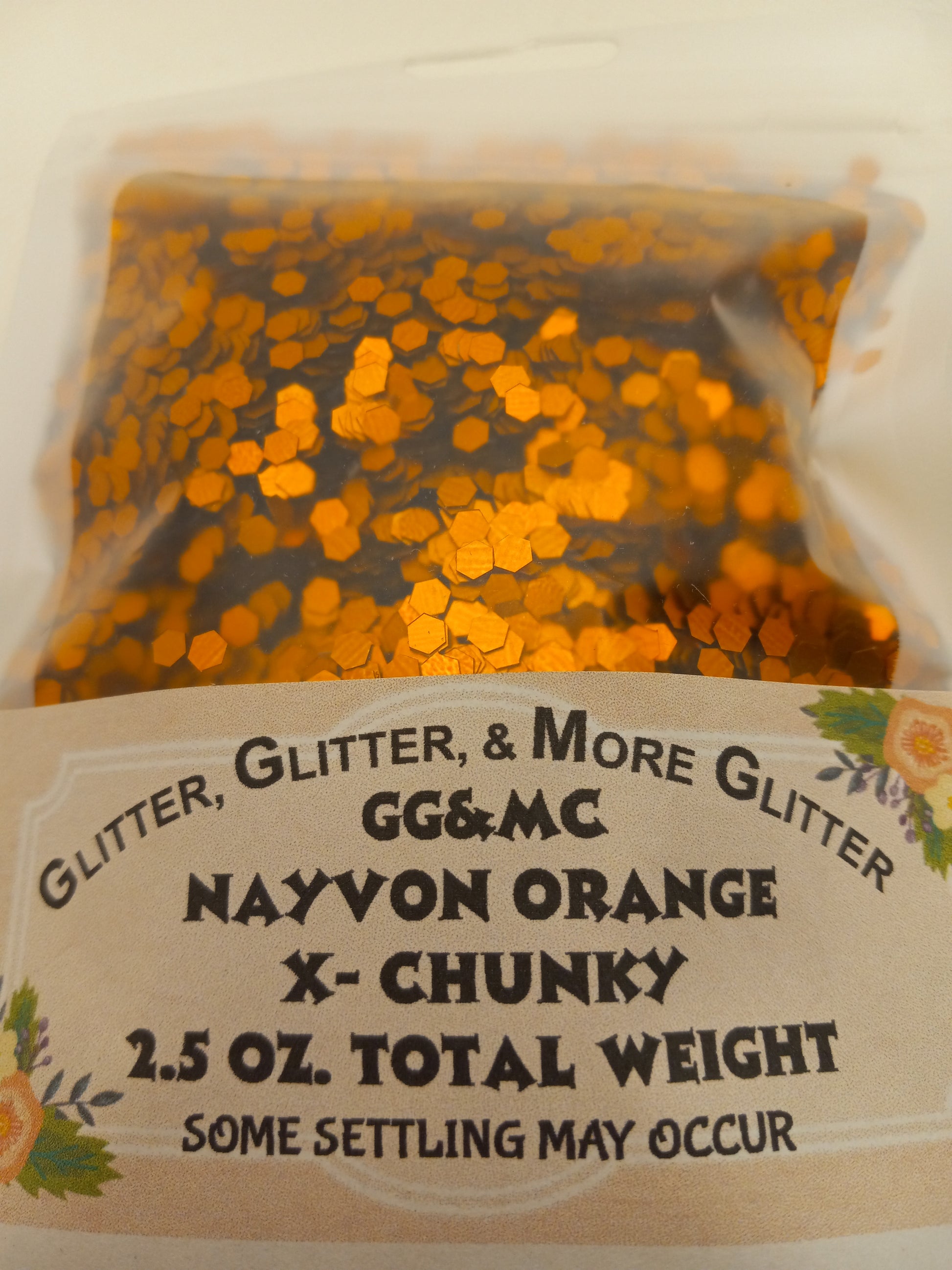 Nayvon Orange X-Chunky Glitter Flakes exude a captivating brilliance, with oversized flakes meticulously designed to catch and refract light in a way that commands attention. The vivid orange hue brings a sense of enthusiasm and energy to your projects, making them truly unforgettable. Whether you're a seasoned artist, a dedicated DIY enthusiast, or a visionary designer, these X-chunky glitter flakes promise to infuse your work with a bold burst of creativity.