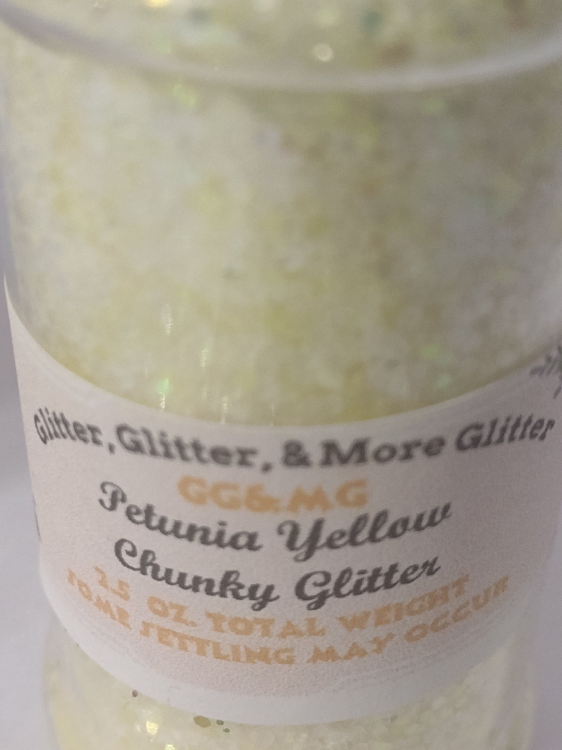Petunia Yellow - Chunky Shimmering Flakes of Light Yellow Glitter. This flake is larger than a regular-size glitter flake but smaller than an X-Chunky flake.