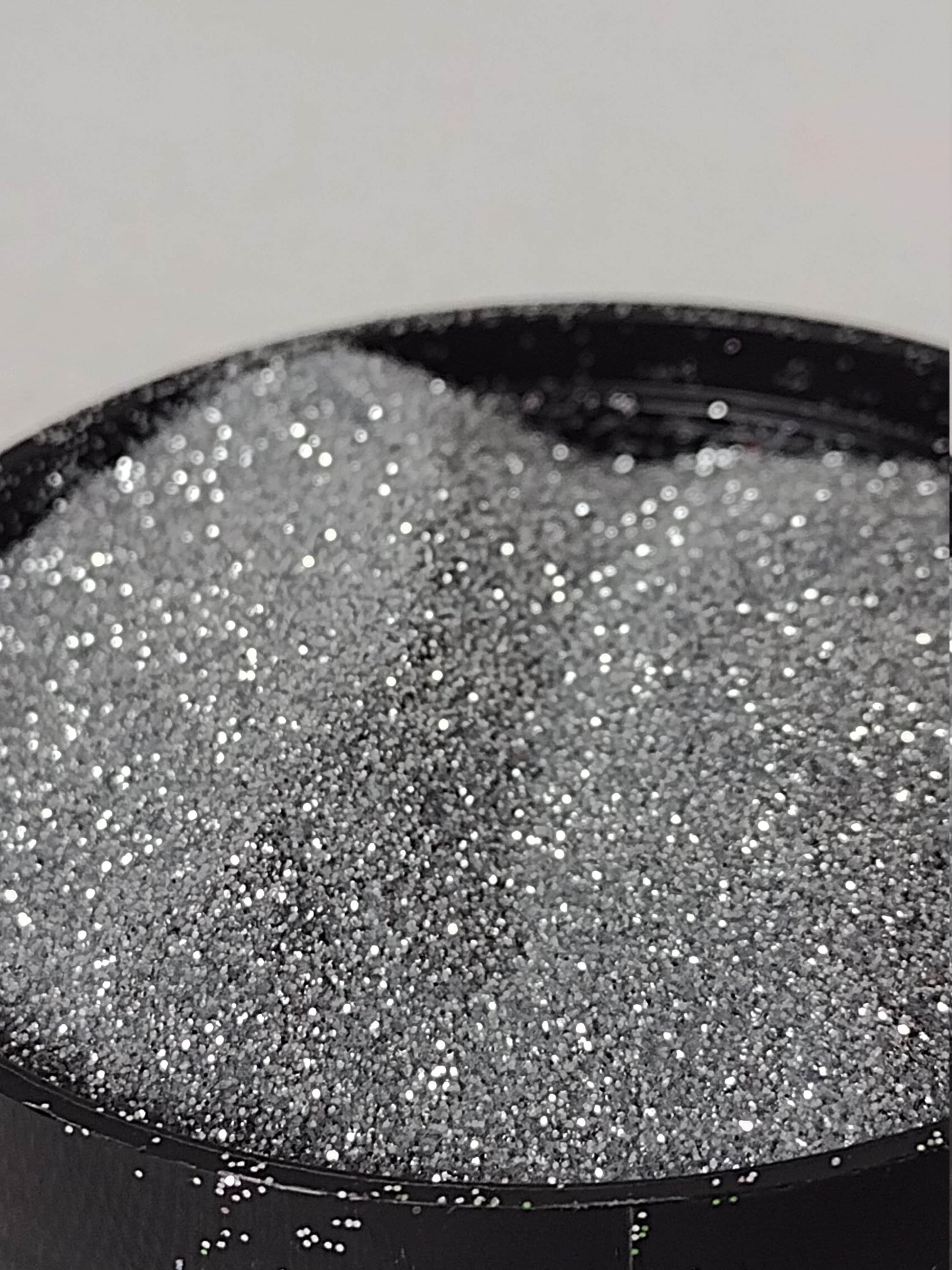 Starlight Silver – Ultra Fine Sparkling, Shiny Silver Glitter. This flake is smaller than the fine glitter flake.