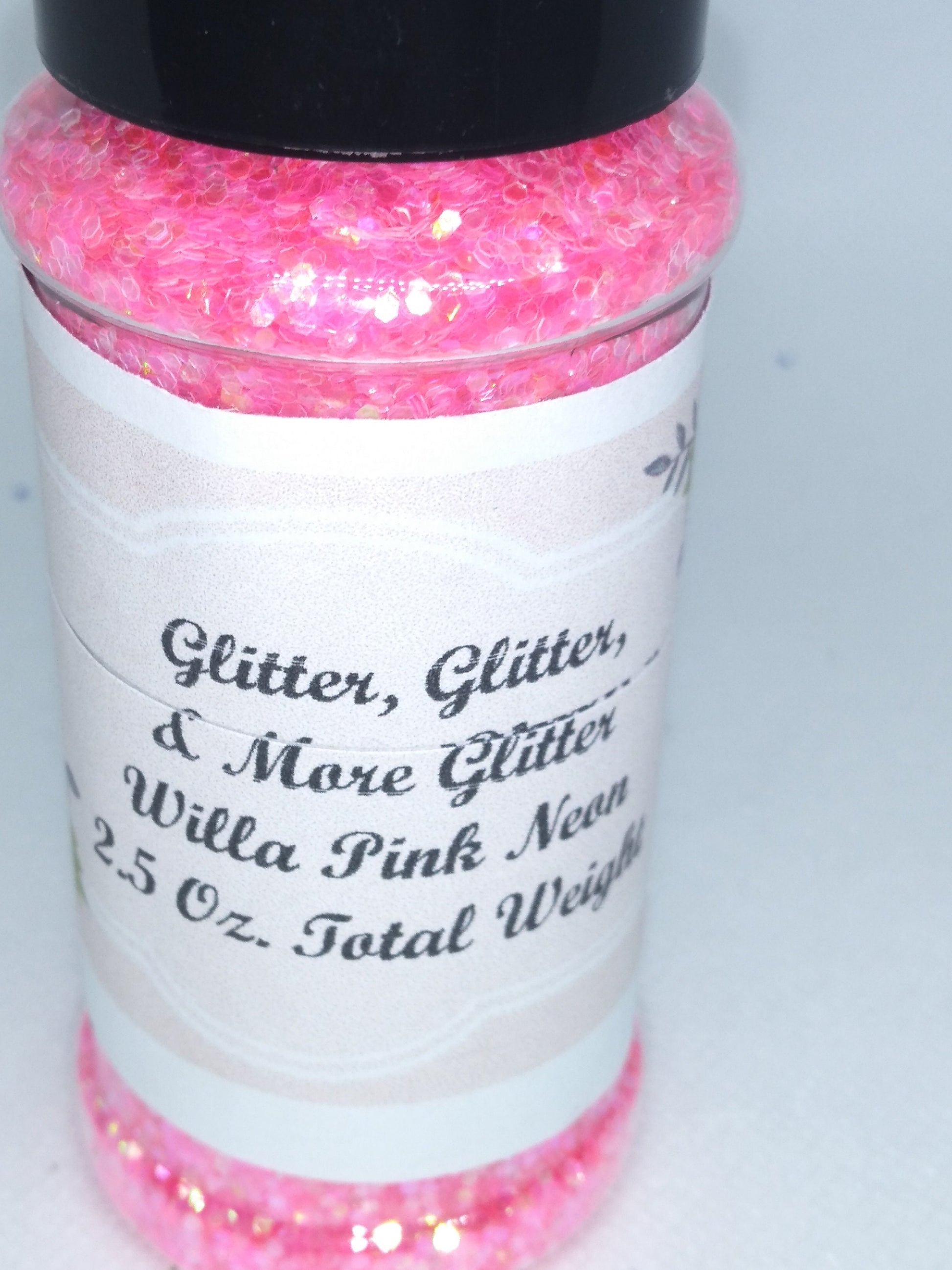 Willa Pink regular-size neon shimmery pink glitter flakes. Discontinued